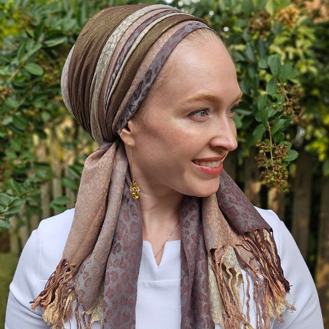 This really is the perfect pashmina, although I don’t really consider it a pashmina. It’s very lightweight so works great for those in-between temperature days. It’s so soft and pleats like a dream. I have the teal and the royal blue. If a dark purple one ever presented itself, my tichel life would be complete.
