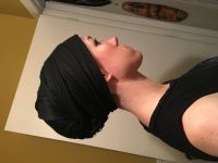 – no matter how light the scarf creation on my head, it all feels heavy and pulls despite the shaper being light (though I saw the trouble-shooting tutorial: I really am thinking ‘up and towards your head’ and ‘snug but not too tight’!)